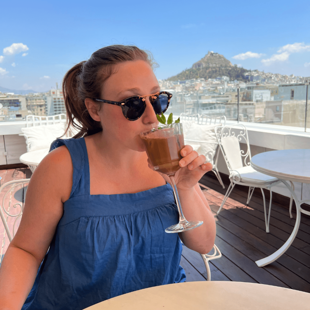 Once we flew in on Olympic Air from Milos we went straight to our hotel. For our second round in Athens, we stayed at New Hotel Athens, which was a Marriot so we were able to use points! Our room wasn’t available so we went to the hotel restaurant and had some drinks and lunch.