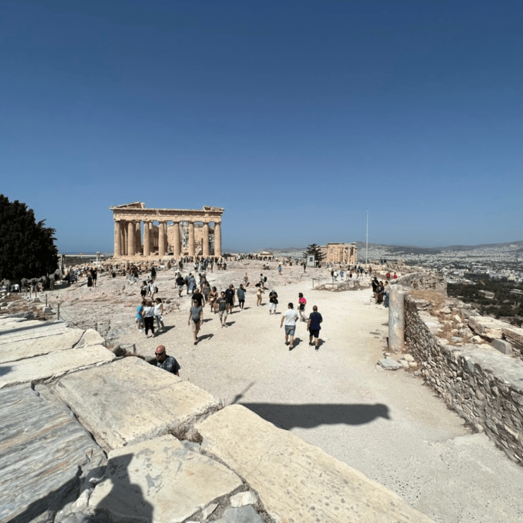 As for weather and types of clothing. Athens was the warmest place we went to. The city has cobblestones and a slope so I don’t recommend heels, you could probably get away with some platform shoes. Most people wore sundresses and sandals. The Acropolis was rocky and dusty so I was glad I wore tennis shoes.