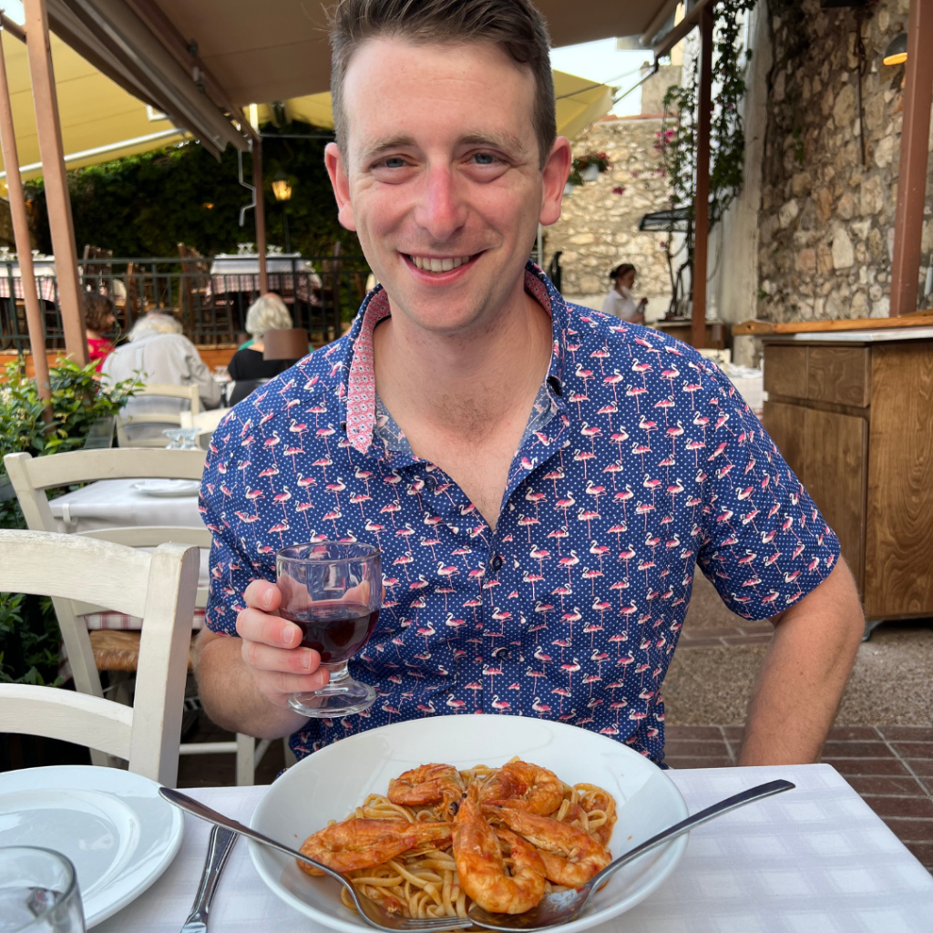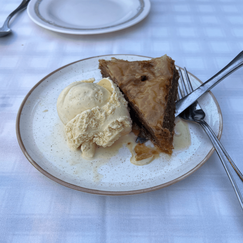 We then walked back to our hotel to relax and get ready for dinner at The Old Tavern of Psara. The views from out table were amazing and the food was delicious. Cody’s dish was way better than mine. He got the linguine with shrimp and honestly I can’t remember what I got but I think it was veal. We finished the night off with traditional baklava, which was delicious. We were told to try ouzo, but we weren’t fans because it tastes just like black licorice which neither of us like.