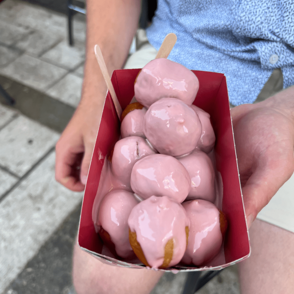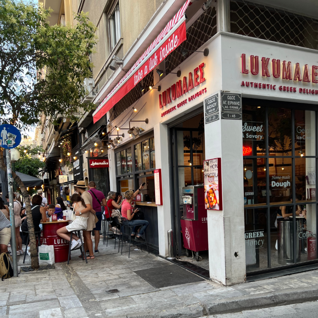 After dinner, we walked around and stopped for Lukumades. They are like donut holes and you can top or fill them with anything on the menu. We got the bugatsa cream filled and topped with strawberry chocolate. Like any other meal we had, they were delicious!