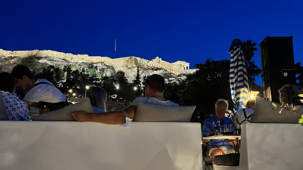 After dinner, we walked around and went to a couple of bars. The first stop was MOSTROU restaurant & roof garden for some wine and a great view of the Acropolis and then 360 Cocktail bar, which was packed and had a view as well.